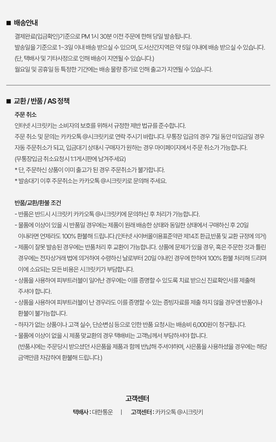½ÃÅ©¸´Å° CS ¹®ÀÇ ±³È¯ / ¹Ýǰ / ȯºÒ